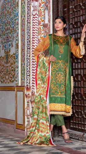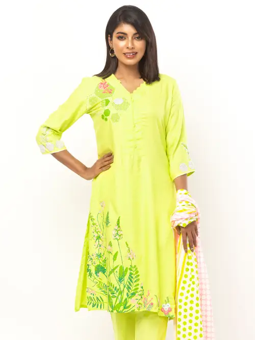 Lime Green Printed and Embroidered Cotton Shalwar Kameez