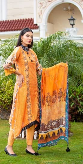 Periwinkle Printed and Embroidered Viscose Kameez