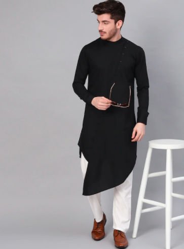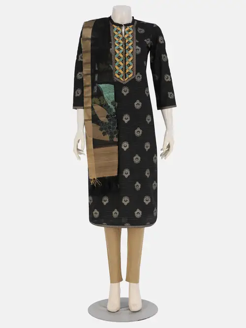 Black Printed and Embroidered Silk Shalwar Kameez