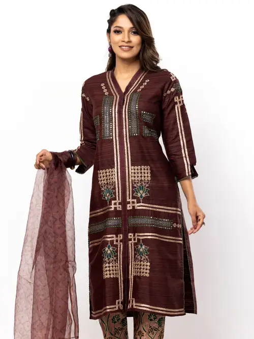 Coffee Maximalism Embroidered Endi Silk Shalwar Kameez