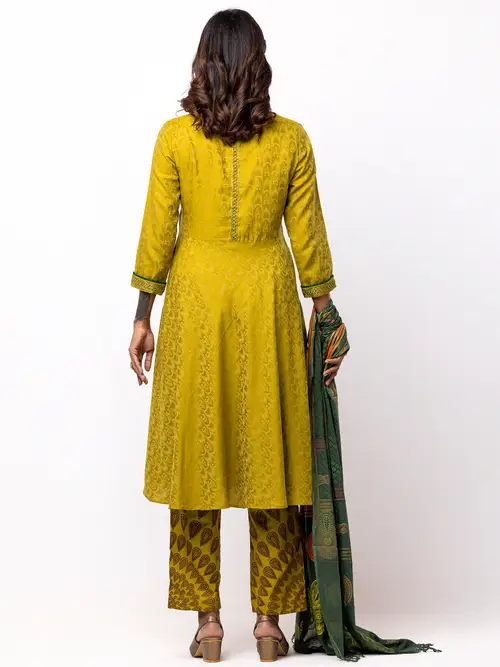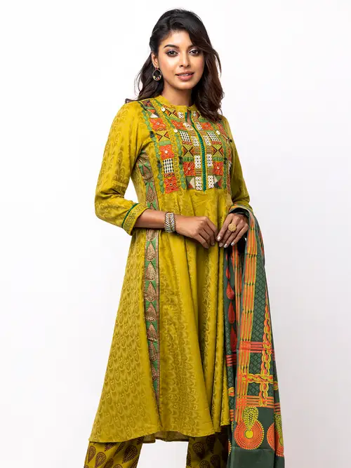 Olive Appliqued & Embroidered Tonal Craft Theme Shalwar Kameez